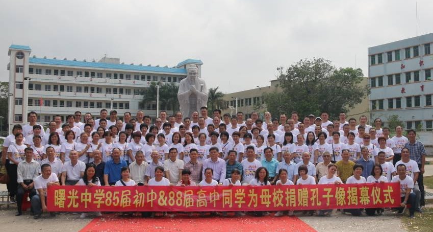 陳美儒先生早年就讀曙光一中,畢業(yè)后,在深圳工作,歷經(jīng)艱難曲折的打拚,終事業(yè)有成,他成功后,不忘農(nóng)場(chǎng)、感恩農(nóng)場(chǎng)。多次捐款支援家鄉(xiāng)建設(shè),2009年10月就捐款近20萬(wàn)元建造了場(chǎng)部文化廣場(chǎng)的燈光球場(chǎng),并多次和其他職工子弟一起捐款支持農(nóng)場(chǎng)舉辦文藝晚會(huì)演出。此次捐資的孔子雕像,是由質(zhì)地細(xì)膩、光澤潤(rùn)滑、色澤純白的花崗巖石雕塑而成,雕像高4.2米,重近8噸。