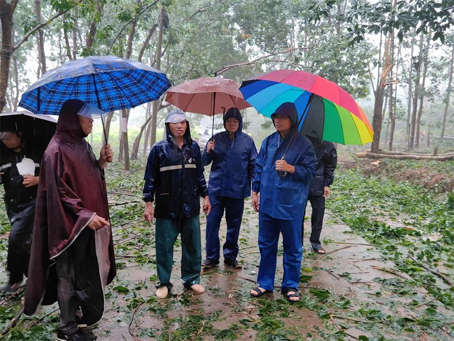 為早日恢復生產(chǎn),把臺風造成的損失減到最低,臺風剛過,公司第一時間召開部室負責人會議,布置組織人員到各掛鉤作業(yè)區(qū)做好風災損失調(diào)查和抗災復產(chǎn)等工作。機關部室人員和治安隊員受令后第一時間冒著臺風過境后的強降雨到各生產(chǎn)隊清除路障,并進入膠園了解受災情況,清點和拍照受損膠樹,現(xiàn)場指導抗災復產(chǎn)。