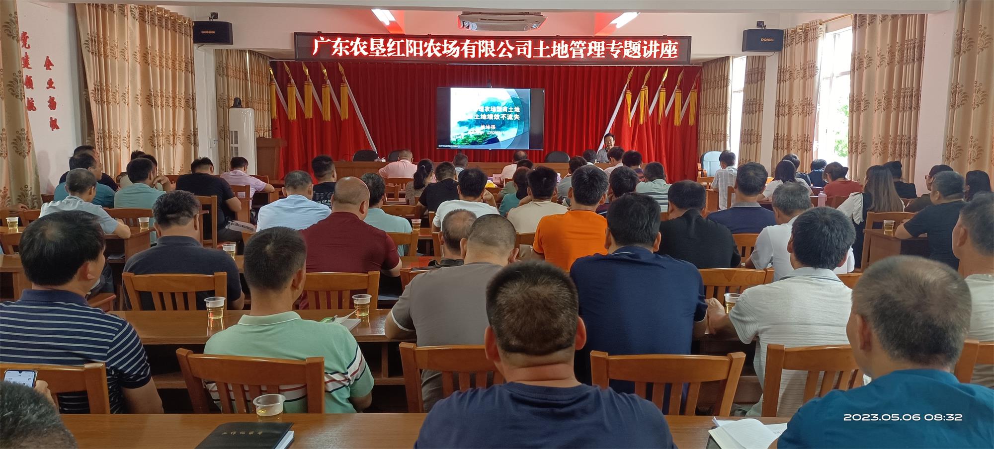 為進一步提高公司管理人員國有土地管理政策理論和業(yè)務水平,5月6日,紅陽農場有限公司邀請茂名市驪威法律信息咨詢有限公司賴培強律師作專題講座。公司領導班子成員,機關、作業(yè)區(qū)全體管理人員共80余人參加。