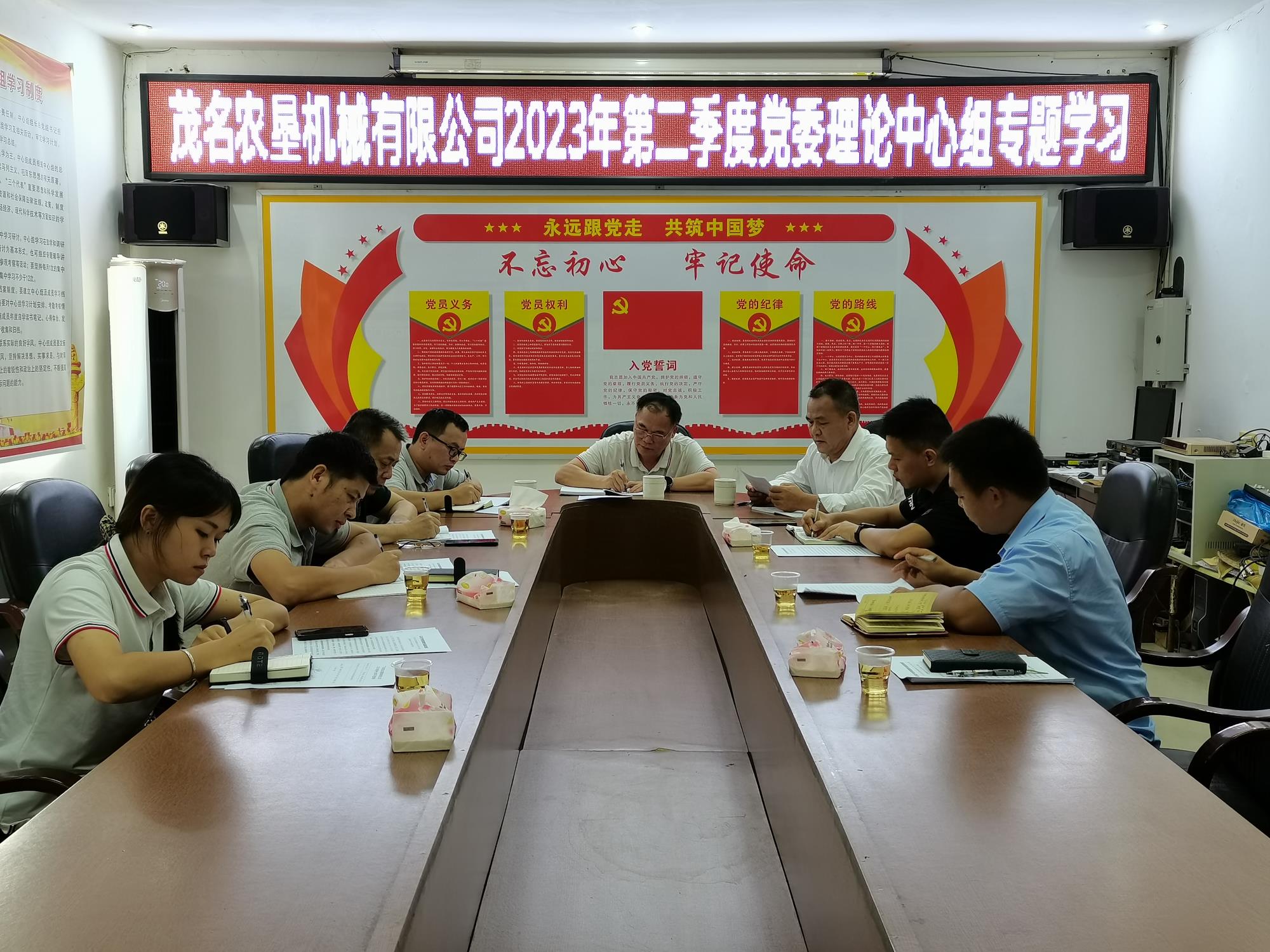 6月29日,茂名農墾機械有限公司召開2023年第二季度黨委理論中心組專題學習會議,公司中層以上干部9人參加學習會議。黨委委員、董事、副總經理、工會主席謝德武主持會議并作題為《以習近平經濟思想指引高質量發(fā)展》的專題輔導發(fā)言。