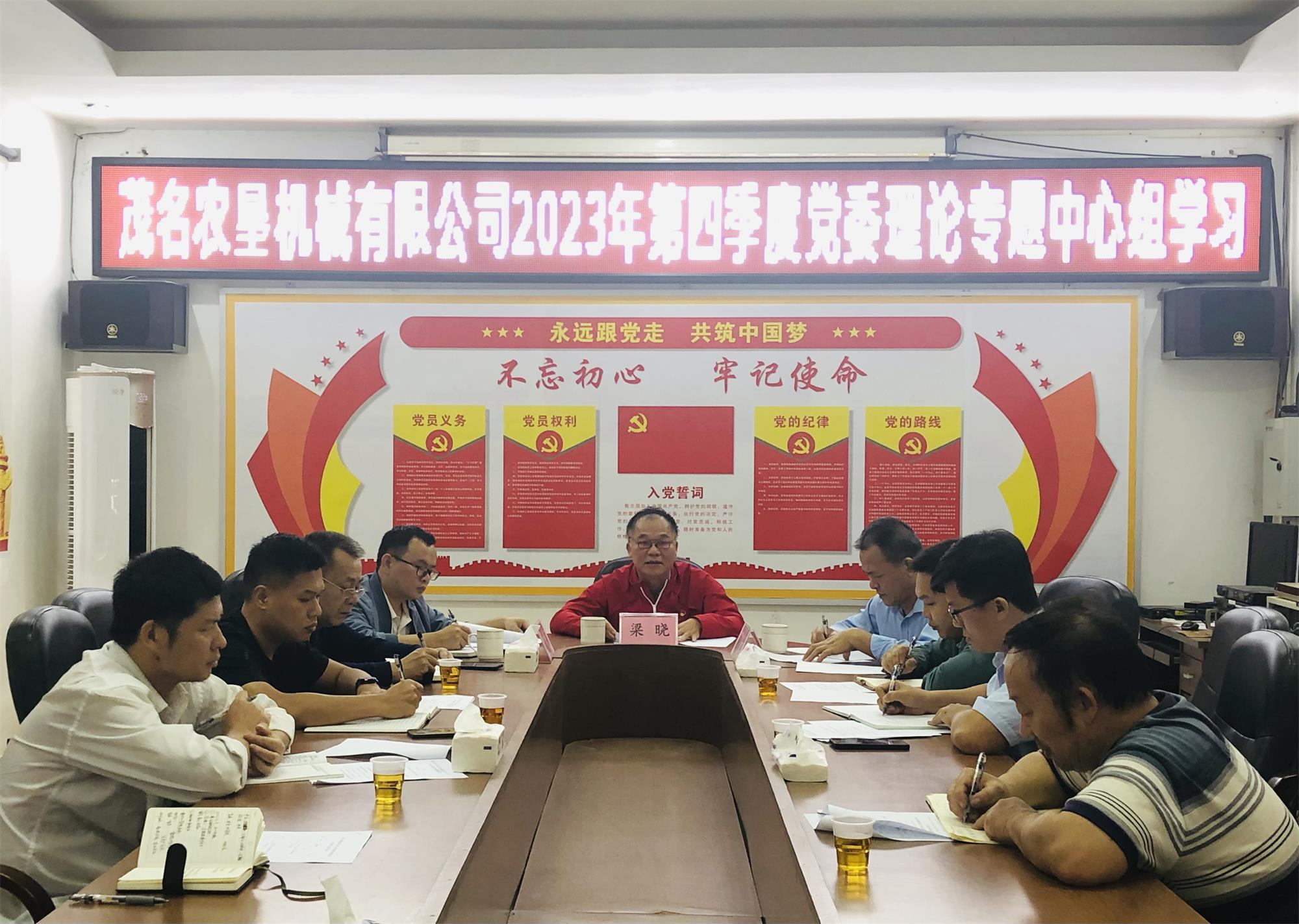 12月11日,茂名農(nóng)墾機械有限公司召開2023年第四季度黨委中心組專題學習會議,黨委書記、董事長、總經(jīng)理梁曉作了《深入學習貫徹習近平文化思想 在社會主義文化強國建設(shè)中展現(xiàn)農(nóng)墾擔當》的專題發(fā)言。相關(guān)部門負責人交流學習體會。