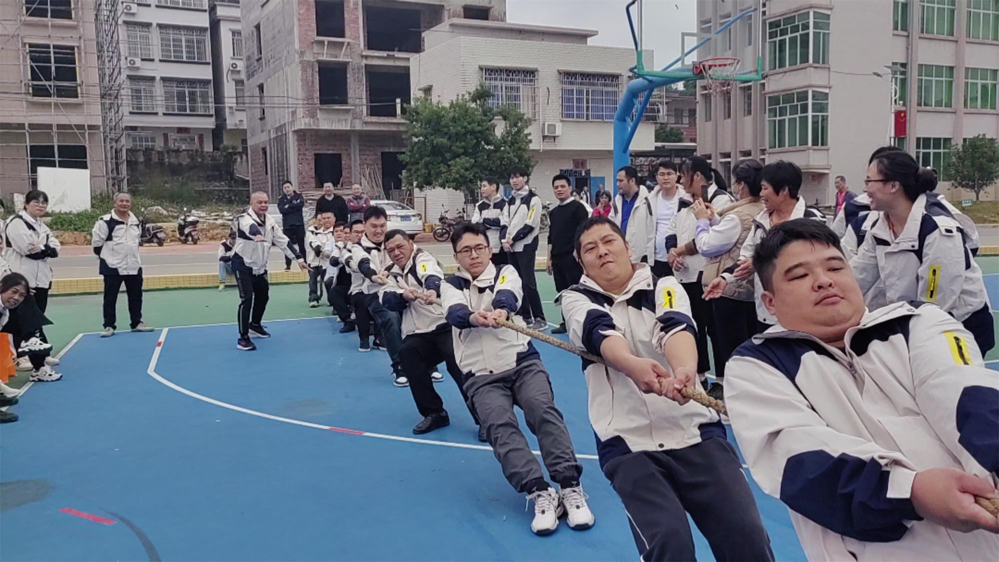 現(xiàn)場(chǎng)氣氛瞬間沸騰,歡呼聲、吶喊聲響徹整個(gè)籃球場(chǎng)。參賽的職工們緊握繩索,全力以赴,展現(xiàn)出了頑強(qiáng)的拼搏精神。