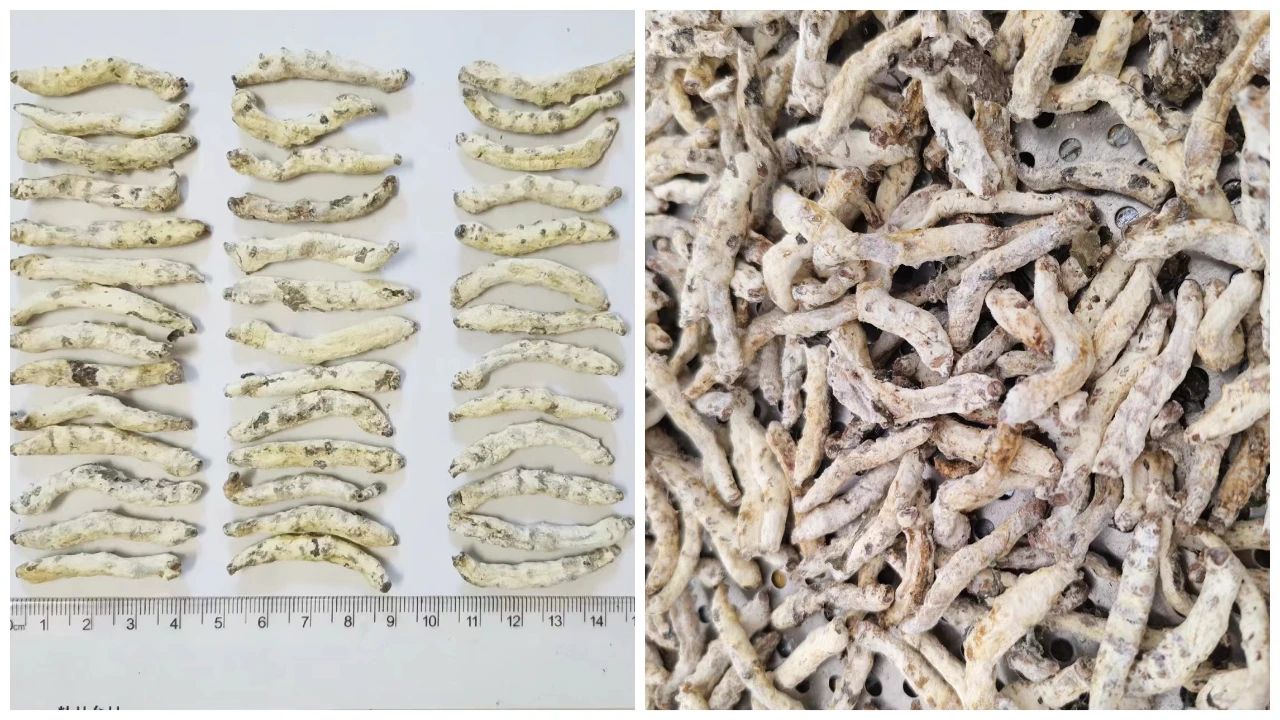 近日,由茂名農(nóng)墾與廣東南藥產(chǎn)業(yè)技術(shù)體系創(chuàng)新團(tuán)隊(duì)(廣州中醫(yī)藥大學(xué))合作開展的僵蠶中試項(xiàng)目,第一批10萬頭僵蠶生產(chǎn)試驗(yàn)順利完成,成功收獲產(chǎn)品50多公斤;經(jīng)第三方專業(yè)檢測(cè),產(chǎn)品各項(xiàng)指標(biāo)均達(dá)到甚至高于藥典標(biāo)準(zhǔn),其中腺嘌呤和腺苷的總含量為0.7 mg/g,產(chǎn)品質(zhì)量上乘。