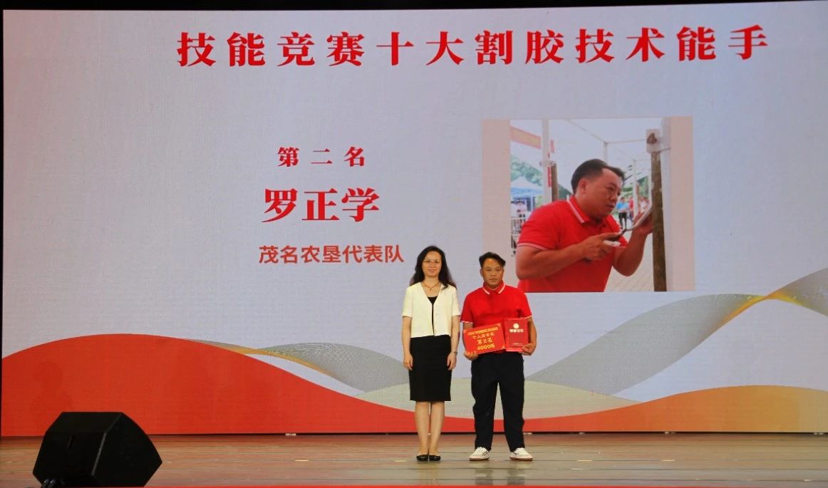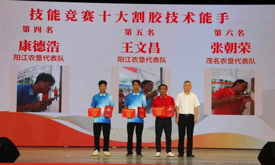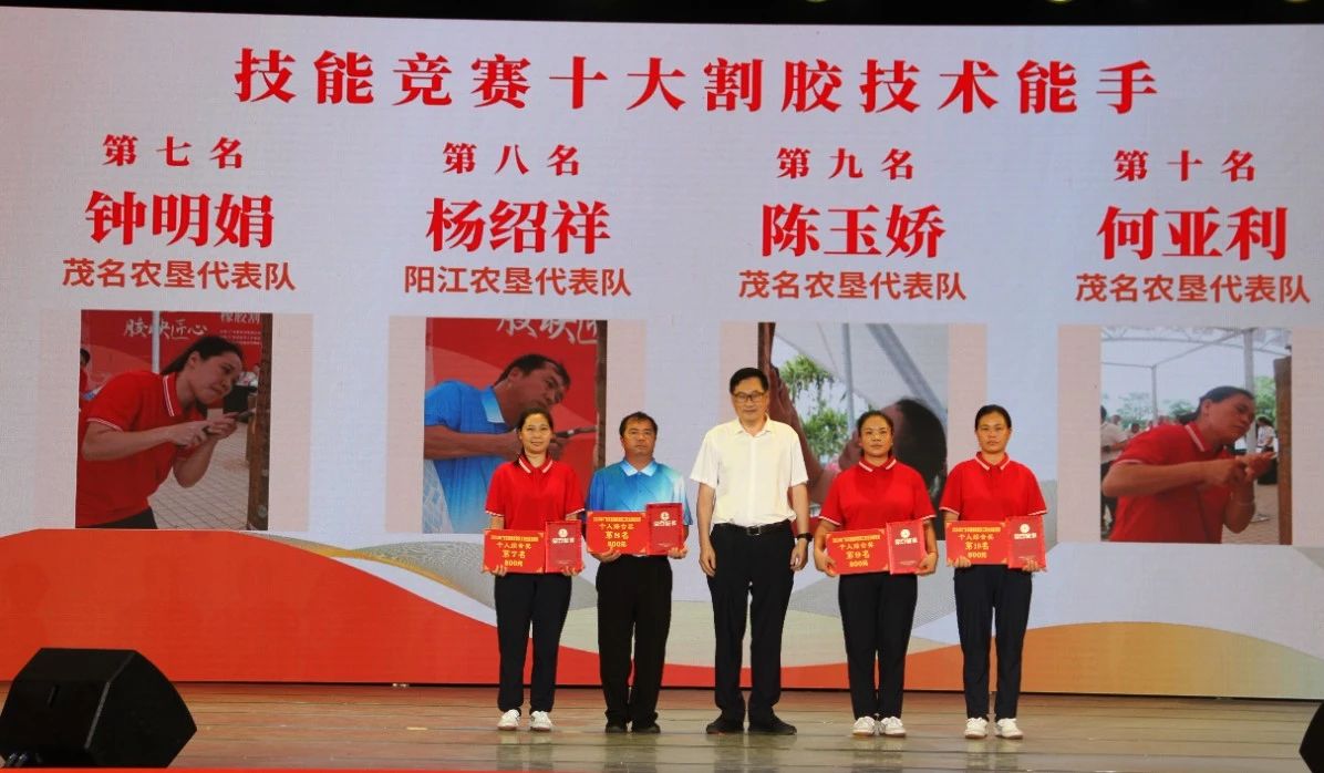 經(jīng)過激烈角逐,茂名農(nóng)墾代表隊(duì)在競賽中獲得佳績,其中,勝利農(nóng)場的黎建春、紅旗農(nóng)場的羅正學(xué)分別獲得第一、二名,將按相關(guān)規(guī)定,經(jīng)省人力資源和社會保障廳核準(zhǔn)后授予“廣東省技術(shù)能手”稱號。團(tuán)結(jié)農(nóng)場的張朝榮獲得第六名,曙光農(nóng)場的鐘明娟、陳玉嬌分別獲得第七、九名,火星農(nóng)場的何亞利獲得第十名,曙光農(nóng)場的羅榮虎獲得電動膠刀賽項(xiàng)第二名。在傳統(tǒng)膠刀賽項(xiàng)前十名中,茂名墾區(qū)包攬了六名。茂名農(nóng)墾代表隊(duì)獲優(yōu)秀組織獎。