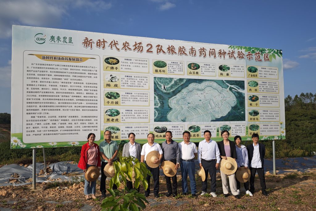調(diào)研組來到新時(shí)代農(nóng)場(chǎng)2隊(duì)橡膠南藥間種試驗(yàn)示范區(qū),察看農(nóng)場(chǎng)南藥種植情況,聽取膠藥產(chǎn)業(yè)融合發(fā)展情況匯報(bào)。鄭文榮對(duì)新時(shí)代農(nóng)場(chǎng)在天然橡膠產(chǎn)業(yè)轉(zhuǎn)型升級(jí)取得的成效表示贊賞,并介紹了天然橡膠“膠園經(jīng)濟(jì)+生態(tài)低碳發(fā)展”的整體思路,重點(diǎn)分享了農(nóng)場(chǎng)天然橡膠發(fā)展南藥林下經(jīng)濟(jì)、開拓新產(chǎn)品以及為市場(chǎng)提供高品質(zhì)農(nóng)產(chǎn)品、提高產(chǎn)品附加值的探索及構(gòu)想。