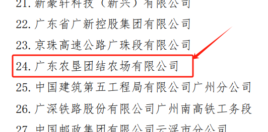 12月4日,廣東省總工會發(fā)布第三批提升職工生活品質(zhì)試點單位名單,廣東農(nóng)墾團(tuán)結(jié)農(nóng)場有限公司名列其中,為廣東農(nóng)墾本年度唯一獲此殊榮的企業(yè),也是該批次省內(nèi)唯一一家農(nóng)業(yè)企業(yè)。??