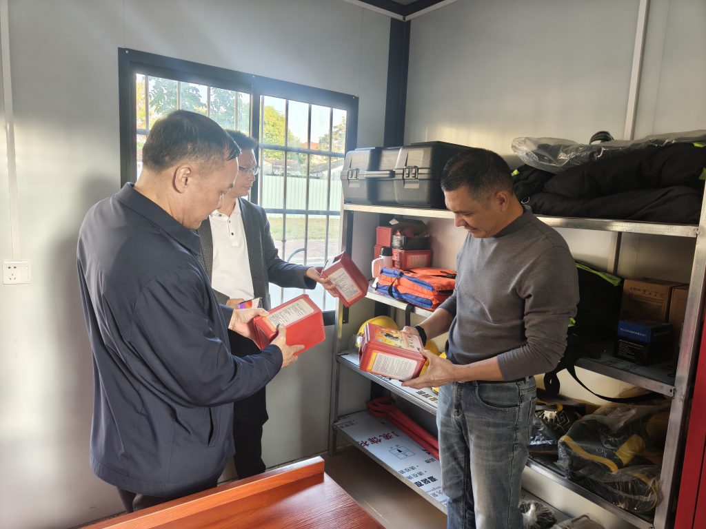在曙光農(nóng)場(chǎng)消防站檢查設(shè)備配備情況