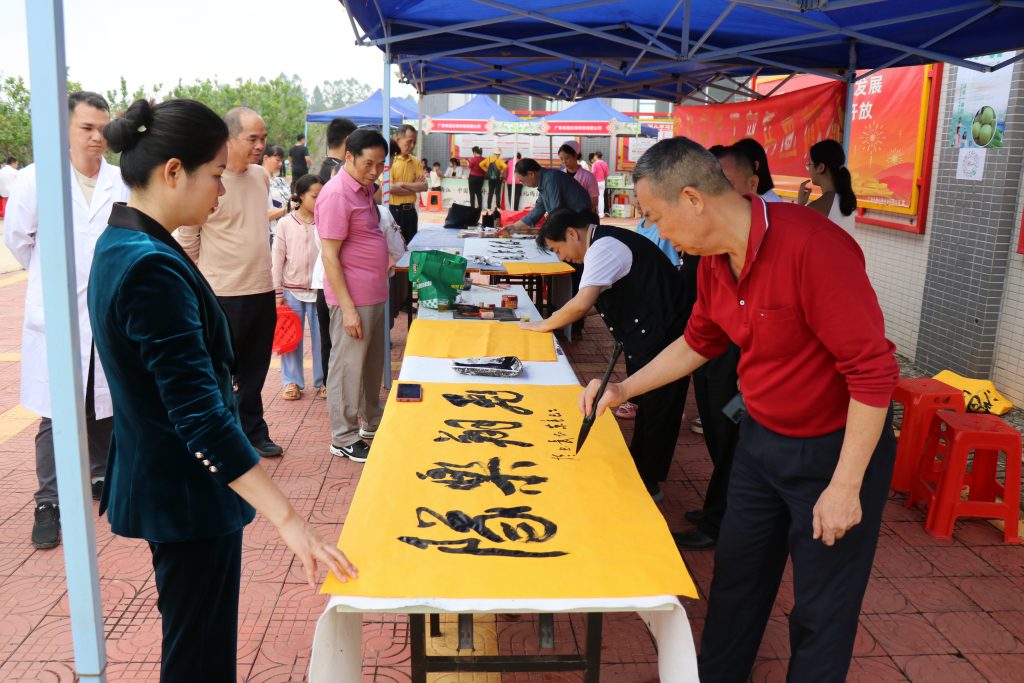 活動(dòng)現(xiàn)場(chǎng),各項(xiàng)沉浸互動(dòng)熱鬧非凡,春日經(jīng)濟(jì)活力涌動(dòng)?!盎?、開(kāi)、好、運(yùn)”尋寶游戲區(qū)里新奇神秘,通過(guò)將化橘紅典故植入定向越野環(huán)節(jié),游客在爛漫花海中探尋文化密碼,集齊“紅峰橘寶”兌換憑證的趣味機(jī)制,讓文化傳承變得可觸可感;書(shū)法繪畫(huà)區(qū)墨香氤氳,書(shū)畫(huà)家們激情揮毫潑墨,筆鋒游走間,一幅幅精美的字畫(huà)躍然紙上,游客憑消費(fèi)憑證即可獲贈(zèng)名家作品,實(shí)現(xiàn)藝術(shù)收藏與農(nóng)產(chǎn)品消費(fèi)的跨界融合;“太空漫步”“螃蟹賽跑”等創(chuàng)意游戲引爆參與熱潮,“蛇行好運(yùn)搶頭彩”等團(tuán)隊(duì)挑戰(zhàn)項(xiàng)目增進(jìn)親子默契,廣墾鳳鮮無(wú)抗雞蛋與化橘紅產(chǎn)品兌換區(qū)前人流如潮,綠色健康理念與道地藥材價(jià)值形成消費(fèi)雙驅(qū)動(dòng)。