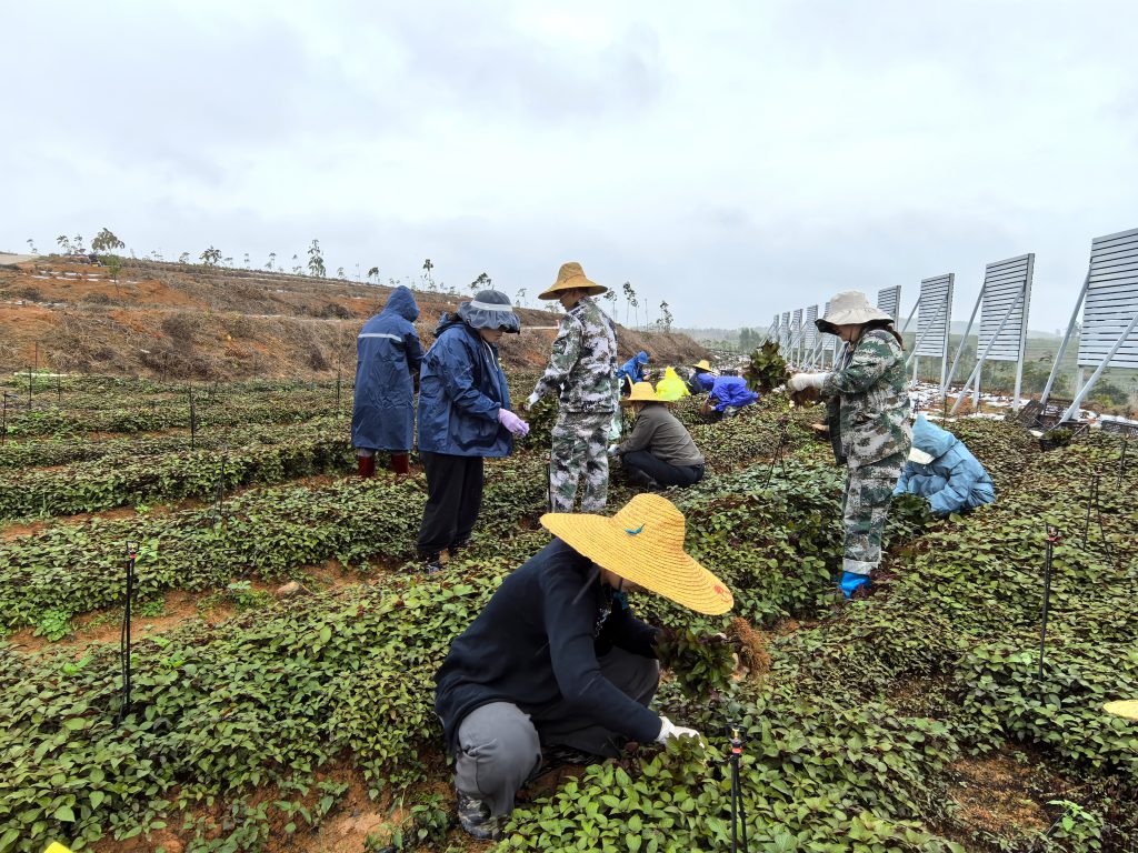 春雨綿綿中,20余名黨員在紫蘇苗圃基地開(kāi)展“搶春移栽突擊戰(zhàn)”,3小時(shí)打包2.2萬(wàn)株種苗出圃。甘蔗地里,“春耕突擊隊(duì)”紅旗飄揚(yáng),30名黨員帶領(lǐng)工人分片包干3天內(nèi)完成300畝蔗地的施肥任務(wù),5天儲(chǔ)備蔗種48噸,已播種173畝?!艾F(xiàn)在每天人機(jī)同時(shí)作業(yè),黨員包片負(fù)責(zé),確保不誤農(nóng)時(shí)?!苯ㄔO(shè)農(nóng)場(chǎng)負(fù)責(zé)人表示。