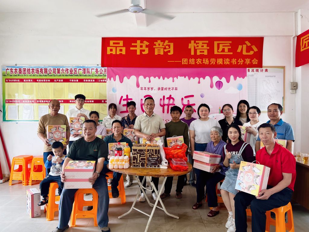 團結(jié)農(nóng)場舉辦別具意義的勞模讀書分享會暨集體生日會。活動特邀省勞模歐超群和高州市勞模郭茂貴,與橡膠產(chǎn)業(yè)工人共話奮斗歷程。他們回憶建設(shè)歲月,講述奮斗故事,分享近期讀書感悟,并寄語職工養(yǎng)成閱讀習(xí)慣,靜下心來品味書香,感受閱讀帶來的力量與樂趣。大家紛紛表示,通過與勞模們面對面交流,深受鼓舞,今后將以勞模為榜樣,不斷提升自身的業(yè)務(wù)能力和綜合素質(zhì),努力成為新時代的最美奮斗者。
