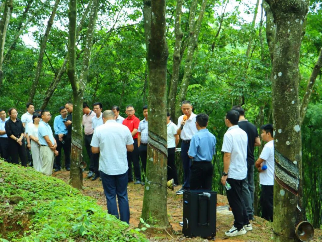 會(huì)前,與會(huì)人員到紅旗農(nóng)場(chǎng)10隊(duì)橡膠基地實(shí)地學(xué)習(xí)觀摩,圍繞橡膠生產(chǎn)管理等工作進(jìn)行交流探討。