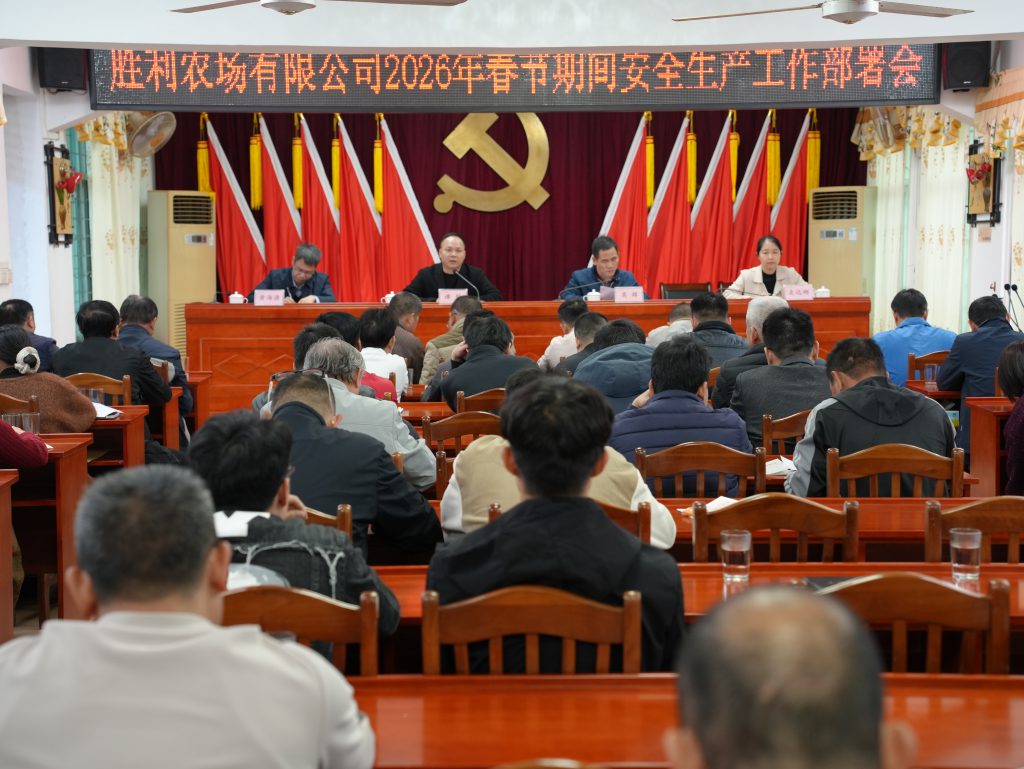 新春佳節(jié)將至,為深入貫徹落實兩級農(nóng)墾集團(tuán)關(guān)于歲末年初安全生產(chǎn)工作的部署要求,堅決防范和遏制各類安全事故發(fā)生,切實保障全場職工群眾生命財產(chǎn)安全與場區(qū)和諧穩(wěn)定,2月9日,勝利農(nóng)場有限公司召開2026年春節(jié)假期安全生產(chǎn)工作部署會,對節(jié)日期間安全防范、應(yīng)急值守、隱患排查等重點工作進(jìn)行部署。