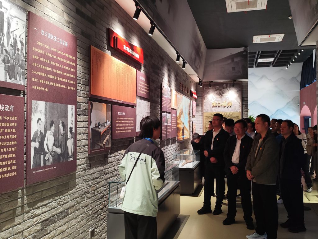活動首站,黨員及職工來到位于懷鄉(xiāng)鎮(zhèn)的廣東南路革命信宜教育基地。在莊嚴(yán)肅穆的展陳廳內(nèi),大家懷著崇敬的心情,認(rèn)真聆聽講解員講述那段烽火連天的歲月。通過一幅幅珍貴的歷史圖片、一件件飽經(jīng)滄桑的革命文物以及生動的場景復(fù)原,黨員們詳細(xì)回顧了大革命時期至解放戰(zhàn)爭時期南路地區(qū)的革命斗爭歷程,大家深受震撼。這不僅是一次對歷史的回望,更是一次黨性的錘煉,激勵著每一位黨員干部不忘初心、牢記使命,將革命先烈的堅定信念轉(zhuǎn)化為干事創(chuàng)業(yè)的強(qiáng)大動力。