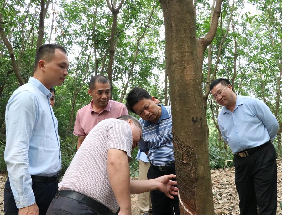 海南天然橡膠產(chǎn)業(yè)集團(tuán)到茂名墾區(qū)調(diào)研 10月29日,海南天然橡膠產(chǎn)業(yè)集團(tuán)副總經(jīng)理黃廉宏率海南農(nóng)墾有關(guān)人員到茂名墾區(qū)有關(guān)單位調(diào)研,茂名農(nóng)墾集團(tuán)有限公司(農(nóng)墾局)黨組副書記、紀(jì)檢組組長(zhǎng)何春濤陪同。 黃廉宏一行先后到勝利、團(tuán)結(jié)農(nóng)場(chǎng)有限公司調(diào)研了橡膠生產(chǎn)、膠園管理、割膠制度改革等方面的情況,并參觀了特色農(nóng)業(yè)基地,對(duì)有關(guān)管理模式和墾區(qū)發(fā)展現(xiàn)狀表示認(rèn)可。