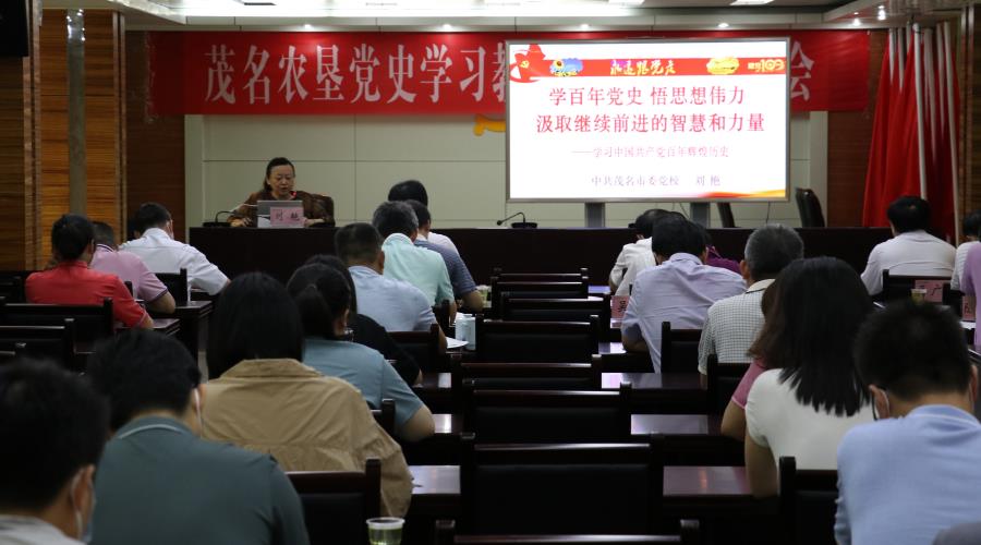 茂名農(nóng)墾舉辦黨史學(xué)習(xí)教育專題宣講報(bào)告會(huì) 6月22日,茂名農(nóng)墾舉辦黨史學(xué)習(xí)教育專題宣講報(bào)告會(huì),邀請(qǐng)黨史學(xué)習(xí)教育市委宣講團(tuán)成員、茂名市委黨校黨史黨建教研室主任劉艷教授作輔導(dǎo)宣講。會(huì)議由集團(tuán)有限公司(局)黨組副書記、總經(jīng)理(副局長(zhǎng))陳永光主持。 劉艷教授以“學(xué)百年黨史 悟思想偉力 汲取繼續(xù)前進(jìn)的智慧和力量”為題,從3個(gè)方面深刻闡述了開展黨史學(xué)習(xí)教育的重大意義、黨的百年奮斗歷程和歷史性貢獻(xiàn)、黨史學(xué)習(xí)教育的重點(diǎn)等,為墾區(qū)廣大干部職工講演了一堂生動(dòng)精彩的黨史課程。