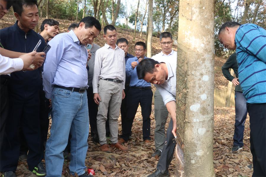 會前,全體參會人員先后到建設(shè)、紅峰、紅陽、新時代、勝利、團結(jié)和曙光農(nóng)場進行參觀,詳細了解了林下經(jīng)濟、油茶產(chǎn)業(yè)、橡膠割制改革、膠園管理、特色農(nóng)業(yè)和留用地開發(fā)等相關(guān)情況。