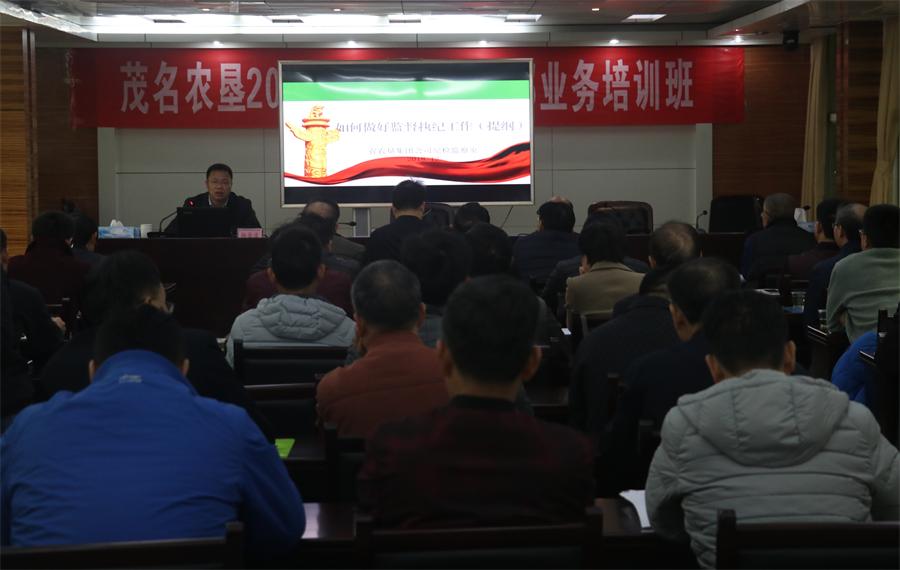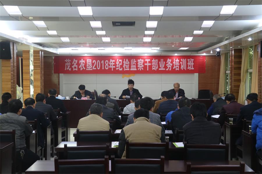 茂名農(nóng)墾舉辦2018年紀(jì)檢監(jiān)察干部業(yè)務(wù)培訓(xùn)班 12月13日,茂名農(nóng)墾舉辦了2018年紀(jì)檢監(jiān)察干部業(yè)務(wù)培訓(xùn)班,邀請廣東省農(nóng)墾集團(tuán)公司(農(nóng)墾局)紀(jì)檢監(jiān)察室主任楊岳波,主任科員王林華進(jìn)行專題授課。茂名農(nóng)墾集團(tuán)公司(農(nóng)墾局)黨組副書記、總經(jīng)理(副局長)陳永光,副總經(jīng)理(副局長)、紀(jì)檢組組長李文炎,陽江農(nóng)墾集團(tuán)公司(農(nóng)墾局)紀(jì)檢組組長何春濤出席,茂名和陽江墾區(qū)各一級(jí)企事業(yè)單位紀(jì)委書記和紀(jì)檢部門負(fù)責(zé)人共50多人參加培訓(xùn)班。