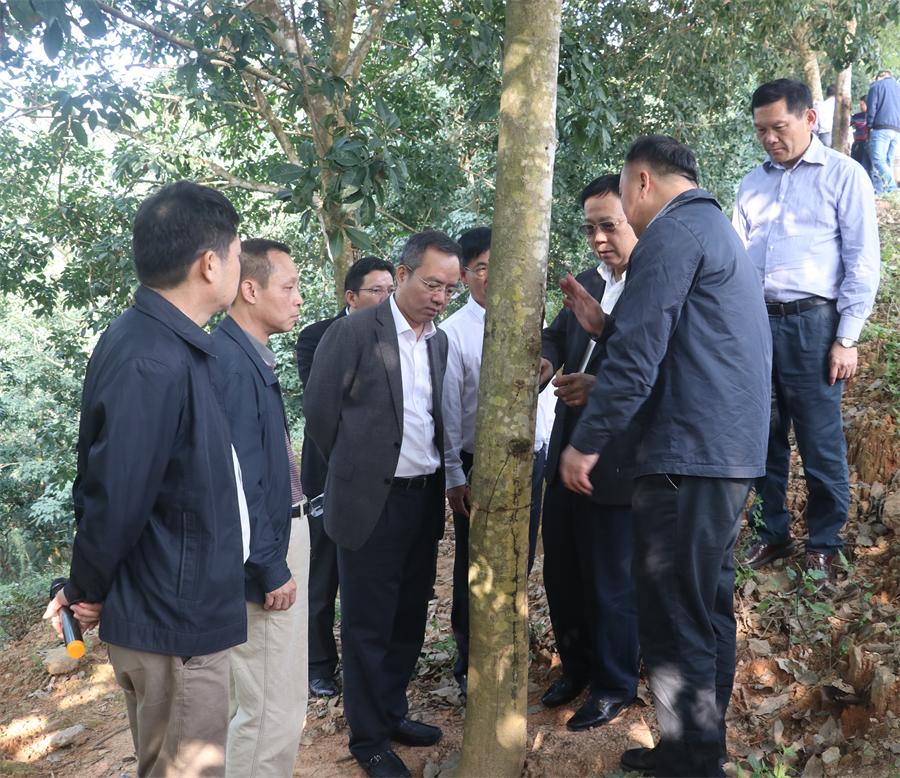 會前,全體參會人員先后到團結農(nóng)場幫田隊、勝利農(nóng)場石板隊、大坡隊和路口隊進行參觀,詳細了解了林下經(jīng)濟、橡膠中小苗撫育、割制改革和膠園管理等相關情況。