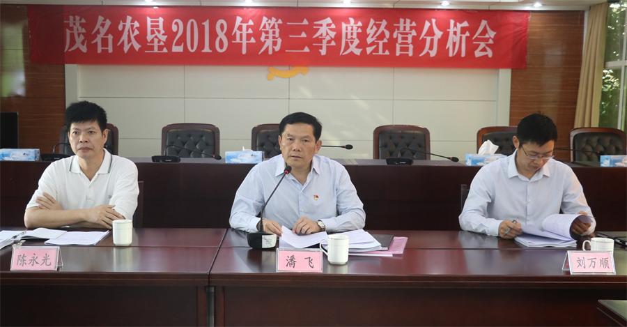 茂名農墾召開2018年第三季度經營分析會 10月19日,茂名農墾召開第三季度經營分析會,主要分析今年前三季度生產經營情況,部署第四季度重點工作。茂名農墾集團公司(農墾局)領導潘飛、陳永光、黃行朝、李文炎、陀志強、林勝榮出席會議,墾區(qū)一級企業(yè)主職領導、相關部門負責人參加會議。省農墾集團公司(農墾總局)經營管理處副處長劉萬順等到會指導。