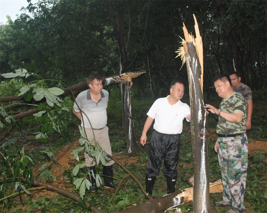 支光南、呂林漢一行先后深入勝利、團結、曙光和紅旗農場受災嚴重區(qū)域,實地察看膠林受損、膠木折枝折干和倒伏等受災情況,并現(xiàn)場指導災后復產工作。
