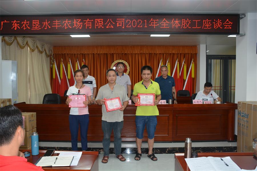 水豐農(nóng)場(chǎng)有限公司召開(kāi)2021年全體膠工座談會(huì) 5月24日,水豐農(nóng)場(chǎng)有限公司召開(kāi)2021年全體膠工座談會(huì),公司領(lǐng)導(dǎo)、部門負(fù)責(zé)人、區(qū)長(zhǎng)、割膠隊(duì)長(zhǎng)和全體膠工共70余人參加會(huì)議。 會(huì)議解讀了《廣東農(nóng)墾水豐農(nóng)場(chǎng)有限公司2021年干膠高產(chǎn)奪標(biāo)競(jìng)賽方案》,要求各膠工要轉(zhuǎn)變觀念,學(xué)深悟透奪膠競(jìng)賽方案,積極推廣低頻割制,多拿樹(shù)位,多割株數(shù),力爭(zhēng)增產(chǎn)增收,確保順利完成今年的干膠任務(wù)。