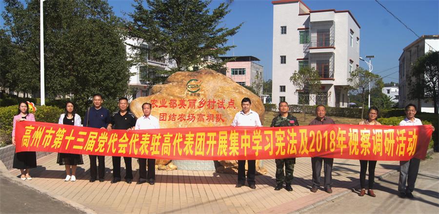 高州市第十三屆黨代會代表駐高代表團到團結(jié)農(nóng)場調(diào)研 近期,高州市第十三屆黨代會代表駐高代表團到團結(jié)農(nóng)場開展集中學(xué)習(xí)憲法及2018年視察調(diào)研活動。