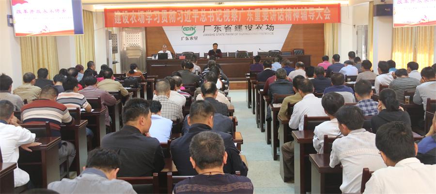 建設(shè)農(nóng)場(chǎng)召開學(xué)習(xí)習(xí)近平總書記視察廣東重要講話精神輔導(dǎo)大會(huì) 11月23日,建設(shè)農(nóng)場(chǎng)召開學(xué)習(xí)習(xí)近平總書記視察廣東重要講話精神輔導(dǎo)大會(huì),邀請(qǐng)了化州市委宣講團(tuán)成員、黨校辦公室主任、講師李萬甘作專題輔導(dǎo)。全場(chǎng)機(jī)關(guān)干部、基層單位管理干部、各黨支部書記共102人參加了會(huì)議。
