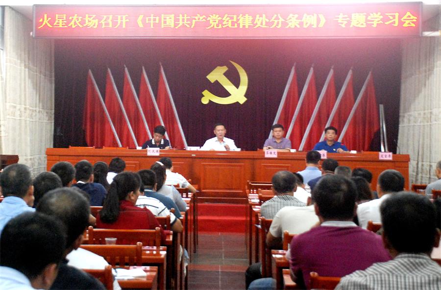火星農(nóng)場召開《中國共產(chǎn)黨紀(jì)律處分條例》專題學(xué)習(xí)會(huì) 近日,火星農(nóng)場舉辦《中國共產(chǎn)黨紀(jì)律處分條例》專題學(xué)習(xí)會(huì),來自全場共90余名黨員干部參加學(xué)習(xí)。會(huì)議由黨委書記陳江海主持。